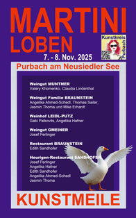 Wer zusätzlich Kunst genießen möchte, folgt der KUNSTMEILE des KUNSTKREIS-PURBACH! Bei folgenden Winzern und Restaurantbetrieben kann man Kunst betrachten, bewundern und auch kaufen: